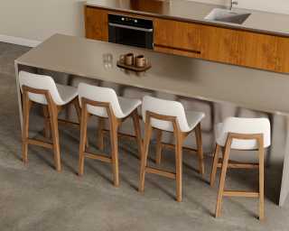 The classic Aubrey Counter Stool is inspired by the ever-popular Aubrey Armchair and Side Chair, bringing the same level of elegance to the modern home. Inspired by sophisticated Italian design, this chair is nicely curved to shape and hold your body in natural comfort. Stylishly made with the choice of fabric or vegan leather upholstery, these sustainable materials makes Aubrey animal friendly and more durable than the average chair.